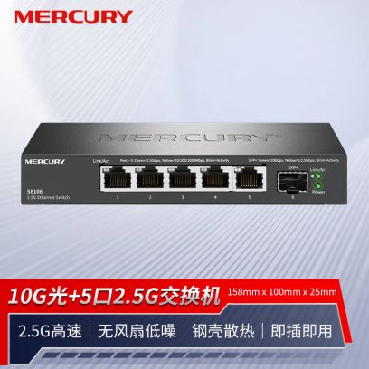 水星(MERCURY)1万兆光+5口2.5G交换机 网络集线分线分流器 光猫NAS适用 SE106, NAS适用|5*2.5G+10GSFP|即插即用