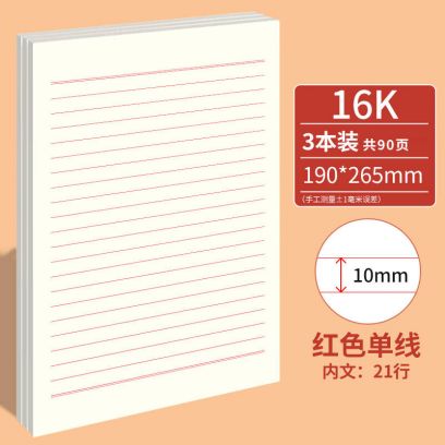 【全网低价】西玛(SIMAA)3本16K/30张信稿纸入党申请专用纸信纸大学生申请书笔记信笺纸红色横格文稿纸, A4红色单线/21行/5本