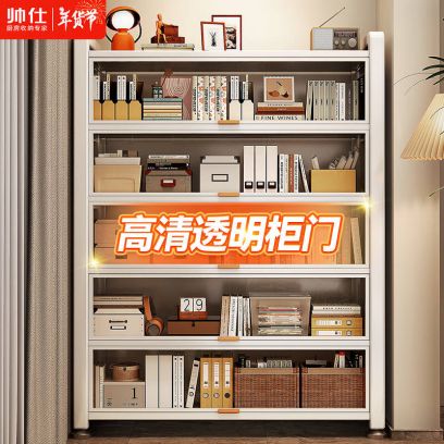 帅仕(shuaishi)家用钢制书架置物架图书馆书柜落地收纳柜学生客厅卧室柜子储物柜 【6层120长35宽】透明亚克力门, 【6层120长35宽】透明亚克力门