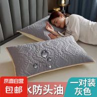 北欧风超压烫花防头油夹棉枕套加厚枕芯隔离层家用防口水枕套 浅灰色 单只装, U型轨道